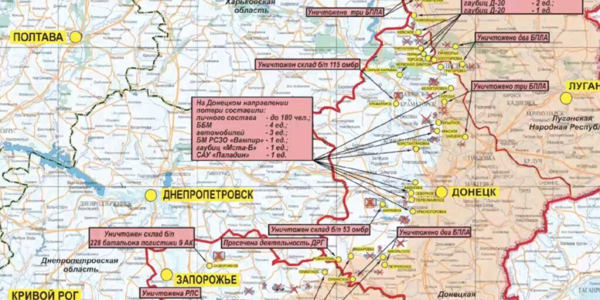 «За сутки [на Донецком направлении] уничтожено до 180 украинских военнослужащих и иностранных наемников», — сообщил генерал-лейтенант в ходе очередного брифинга.