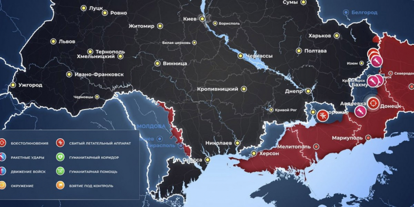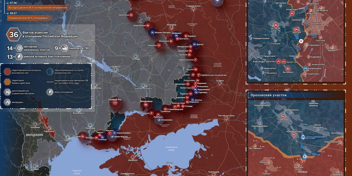 - Карта боевых действий на Украине, к утру 10 июля 2023г., от РИА Новости. Карта специальной военной операции.