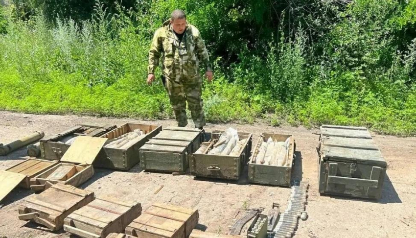 Сотрудники правоохранительных органов изъяли из тайника осколочные гранатометные выстрелы, а также выстрелы для противотанковых гранатометов и ракетных комплексов «Корнет» и «Метис». Кроме того, обнаружены были три снаряда и более 1400 патронов различного калибра, среди которых и подходящие к автомату АК-74.
