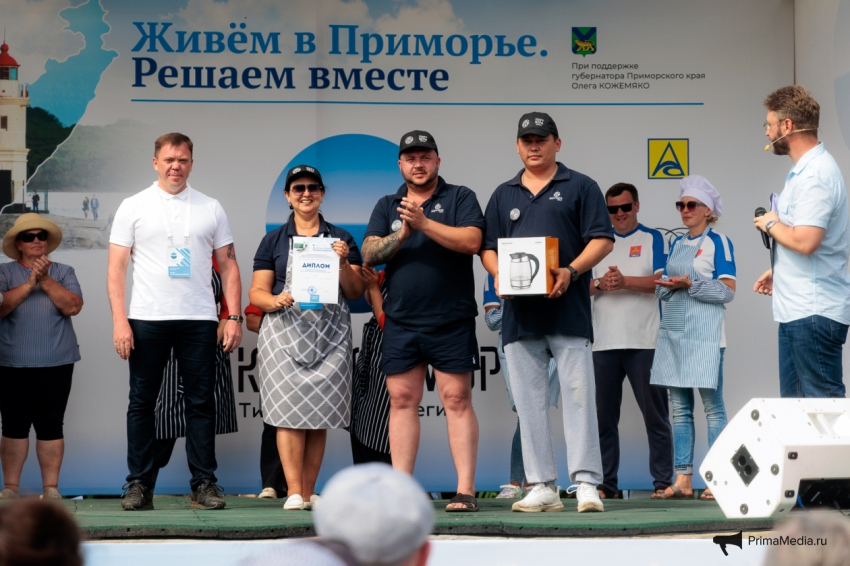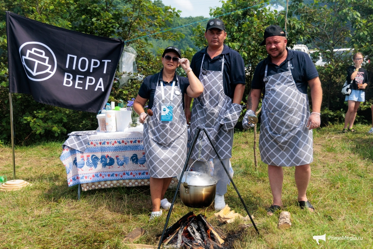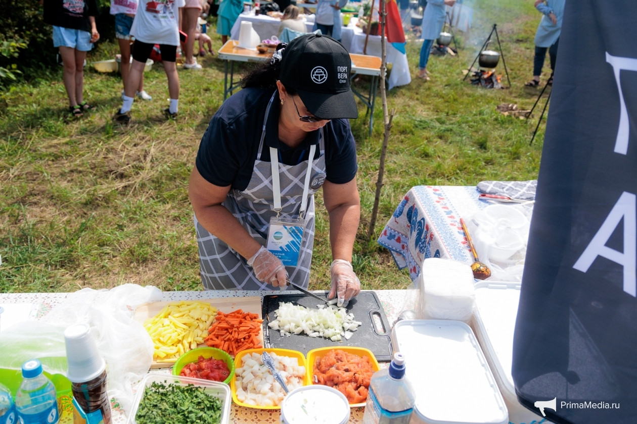 Так, одна из команд, представлявшая морской терминал “Порт “Вера”, готовила необычную уху по рецепту первых переселенцев в Приморье. Для приготовления этого рыбного супа среди традиционных ингредиентов были также использованы сливки и томаты. А для главной составляющей супа — заранее приготовили филе трески и симы. Уха получилось насыщенной и наваристой. Позже эта команда получила приз в номинации “Самый необычный рецепт”.