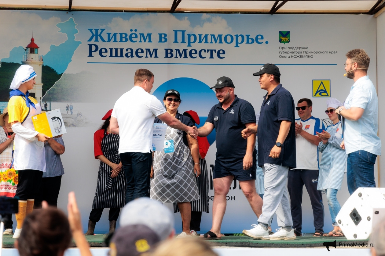 Надо отметить, что фестиваль был насыщен на события. На сцене с концертными номера выступали творческие коллективы Шкотовского муниципального района. В районе 14.00 состоялось награждение победителей утренних заплывов в рамках “Русской версты”. Почти в одно время с этим дали старт конкурсу “Эх, ушица!” на приготовление ухи, в котором приняли участие пять команд. Для их кулинарной “битвы” отвели специальную зону, где были организованы столы и костровища с необходимым инвентарем. Ингредиенты каждая команда привезла с собой.