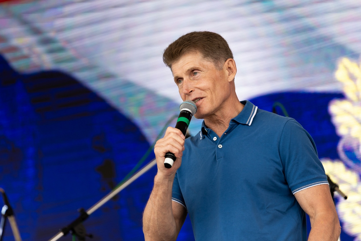 В 12.10 барабанщицы Дальрыбвтуза дали сигнал к началу церемонии официального открытия праздника. На сцену вышел губернатор Приморья Олег Кожемяко.