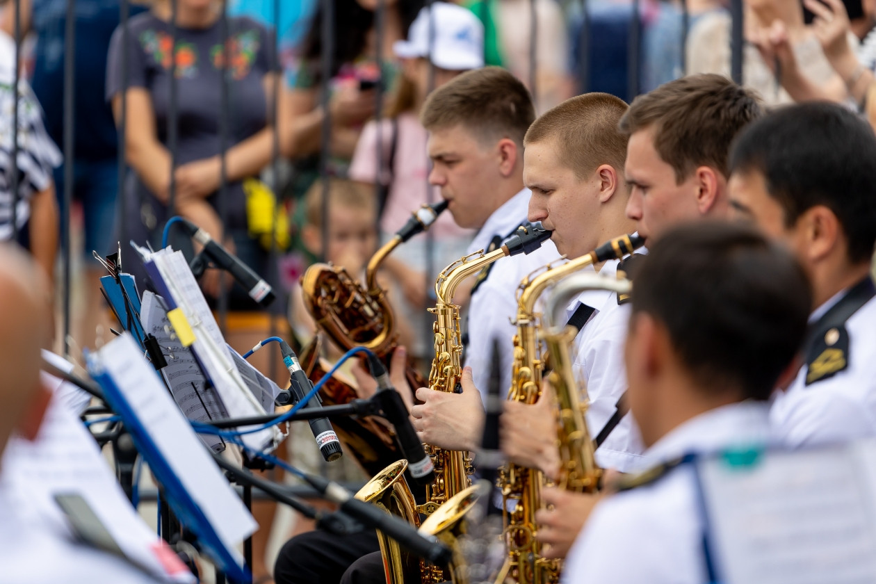 День рыбака во Владивостоке. Орекестр МГУ имени адмирала Г.И. Невельского и Дальневосточного бассейнового филиала ФГУП «Росморпорт». Фото: ИА PrimaMedia