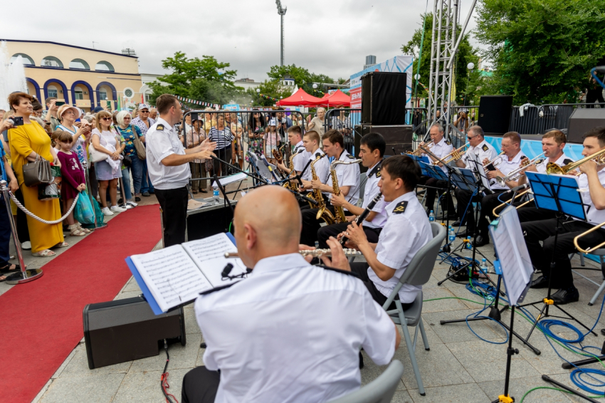 День рыбака во Владивостоке. Орекестр МГУ имени адмирала Г.И. Невельского и Дальневосточного бассейнового филиала ФГУП "Росморпорт". Фото: ИА PrimaMedia