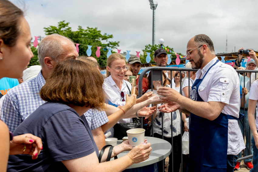 А праздник продолжался. На запах рыбацкой ухи и звуки музыки народ стекался со всего центра Владивостока. Шли целыми семьями. Угощались, общались, в том числе с губернатором. Фотографировались с ним на память.