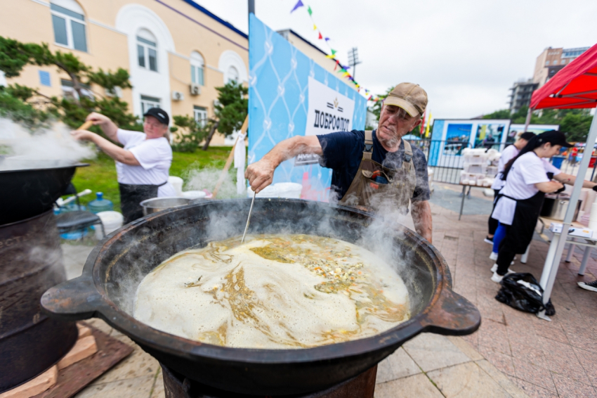 День рыбака во Владивостоке. Традиционная уха. Фото: ИА PrimaMedia