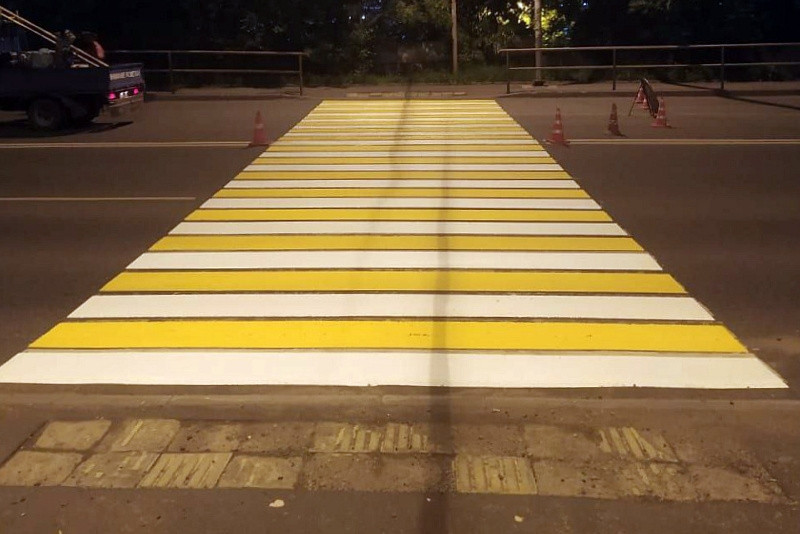 “Обновили разметку на пешеходных переходах, искусственных неровностях, а также наносим новые осевые линии — сплошные и прерывистые. Работы проводим по ночам, чтобы днем не мешать автомобилям”, — прокомментировали на дорожном предприятии.