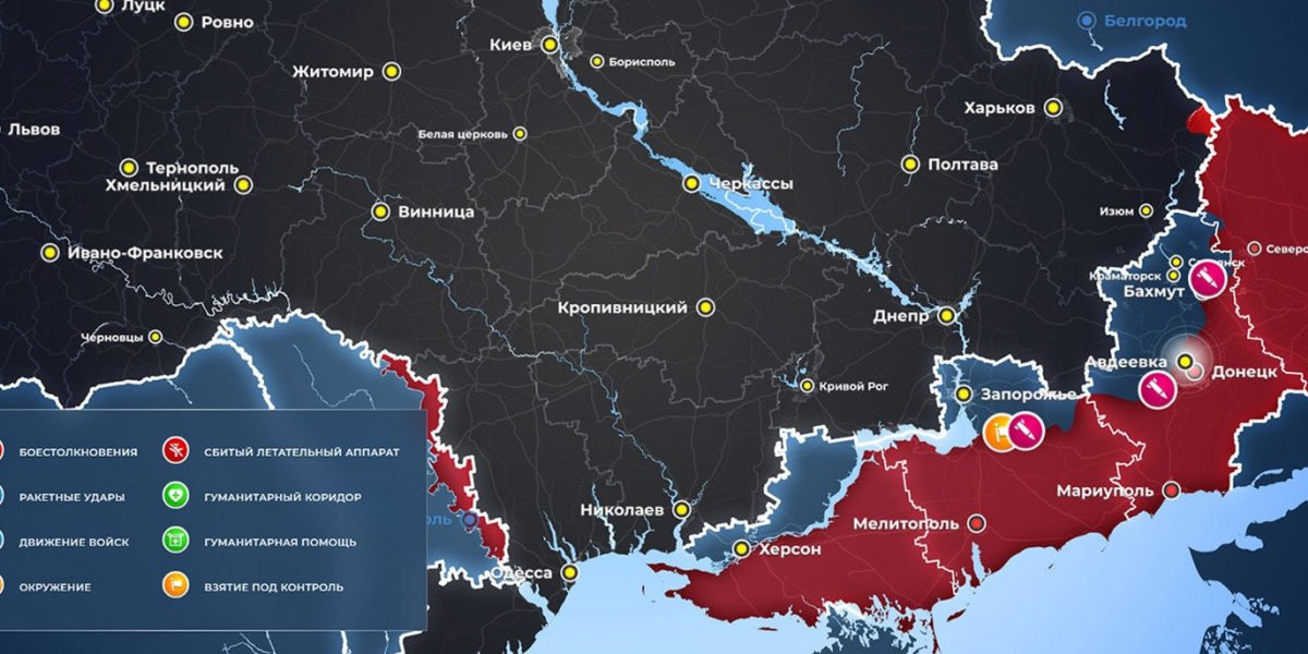 - Карта боевых действий на Украине сегодня, Общая обстановка 14 июля 2023 года от Mash
