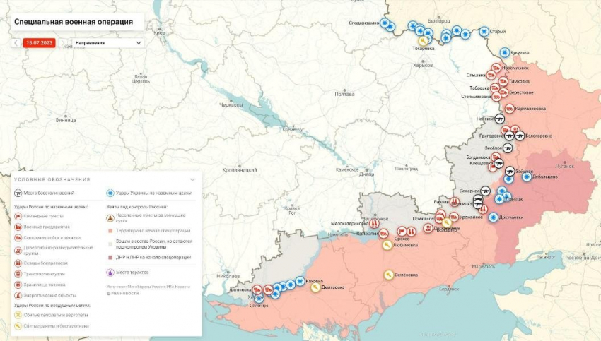Карта боевых действий на Украине 15 июля 2023 года: данные на сегодняшний о ситуации в зоне СВО
