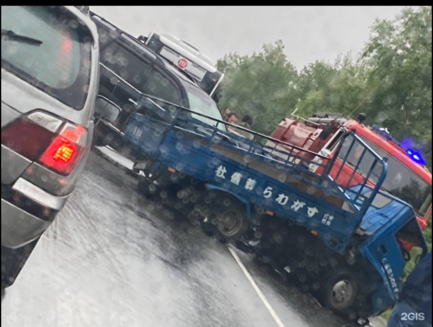 Как рассказывают очевидцы, грузовик выехал на встречную полосу и на большой скорости влетел в джип. “По посёлку нёсся, видимо, торопился”, — комментируют свидетели происшествия.