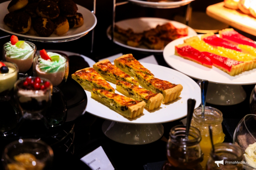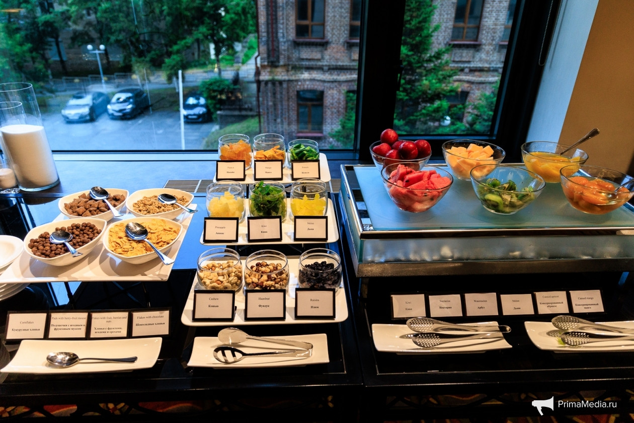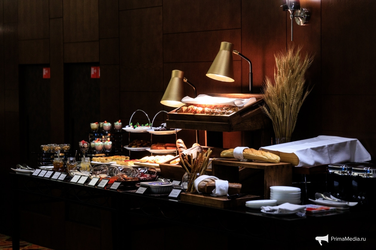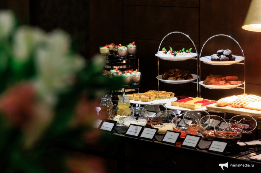 Ценителям вкусной европейской кухни предлагают заглянуть в лобби-бар “Рандеву”, где ежедневно проходит завтрак в формате шведского стола. Тем более, что в начале июля обновился и расширился ассортимент свежей и ароматной выпечки от собственных кондитеров, чьи десерты можно попробовать не только на завтраке, но и в любое время суток. Они представлены на витрине. В “Уголке Кореи” можно найти корейские блюда, приготовленные по традиционным рецептам. Обязательная часть завтрака — морепродукты. В июле лобби-бар “Рандеву” присоединился к Фестивалю дальневосточного гребешка, а потому в меню можно найти позиции из этого нежного морского деликатеса.