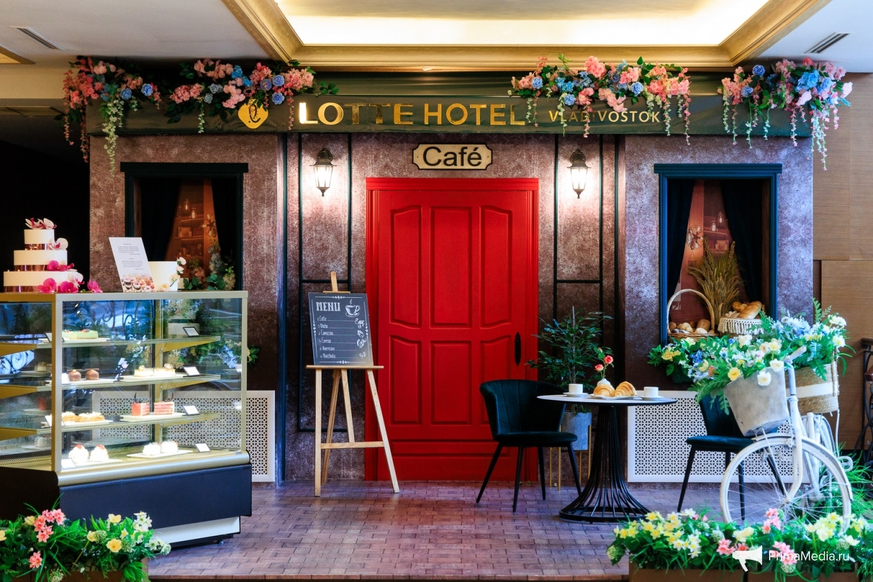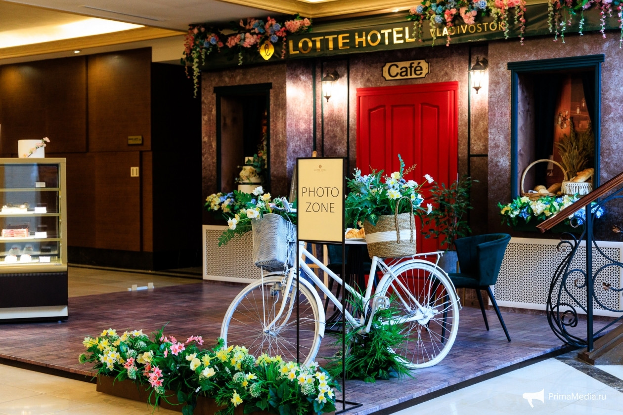 В декабре 2022 года у отеля появилась новая традиция — устанавливать в холле тематические фотозоны. Вслед за новогодней появилась весенняя, а затем — летняя. Новая, наполненная цветами и красками, фотозона — поп-ап кофейня — посвящена открытию собственной кондитерской ЛОТТЕ ОТЕЛЬ ВЛАДИВОСТОК и, конечно, наступлению тёплого сезона. Рядом с ресепшеном также организовали летнюю выставку картин. Такая социальная инициатива — уже не первая. В холле периодически размещают выставки приморских художников, где гости отеля могут познакомиться с местным искусством и даже приобрести картину.