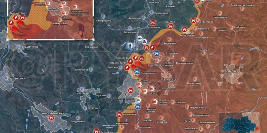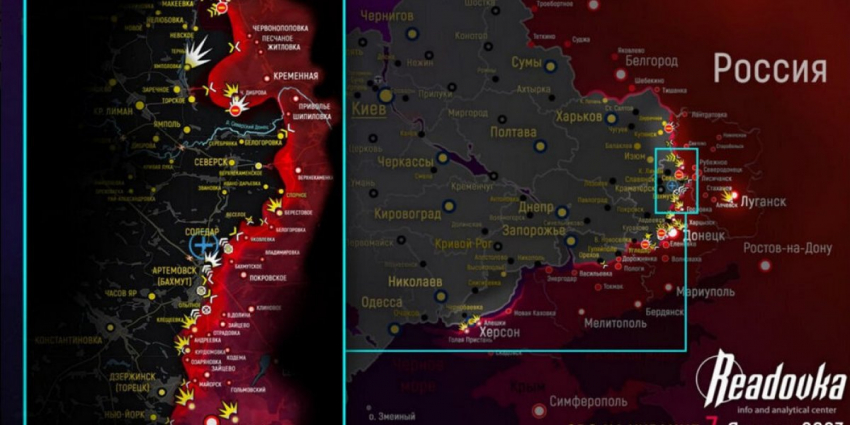 Как пишет канал Южный ветер @south0wind, что ВС РФ перерезали линию снабжения Северск — Бахмут, открыв путь для окружения Бахмутского гарнизона с севера.