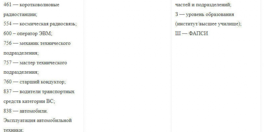 Соответствующий перечень ВУС опубликован в Сети. К примеру, ряд военкоматов заинтересован в следующих специальностях: 100, 106, 131, 166, 878, 879, 113, 554.