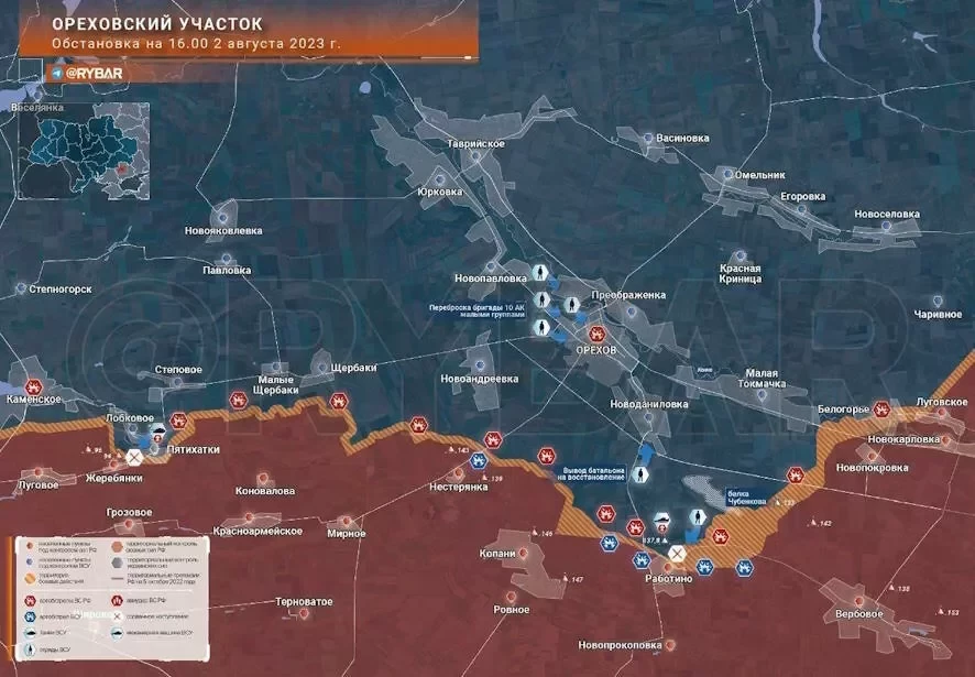 Оперативная сводка о ситуации на Ореховском участке по состоянию на 3 августа 2023 года (карта)