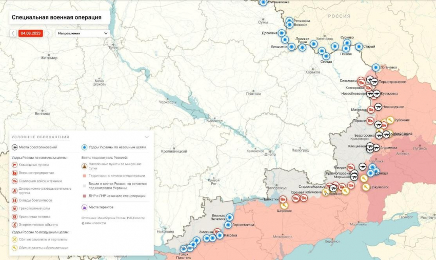Карта боевых действий на Украине: актуальные сведения от 04.08.2023