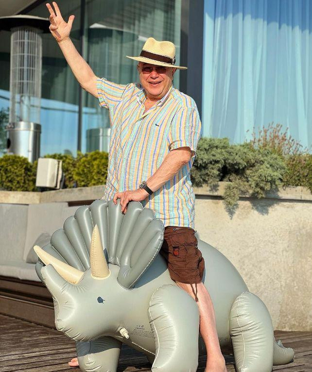 Татьяна Брухунова регулярно публикует в соцсетях снимки из Сочи. Знаменитость уже показала сына Вагана в бассейне, а также обнародовала целую подборку фотографий, на которых продемонстрировала, какими гастрономическими шедеврами их потчуют в курортном городе. Не забывает супруга звездного юмориста и хвастаться своими нарядами. При этом небольшое количество лайков селебрити совершенно не смущает. Порадовал поклонников и сам Евгений Ваганович. Прославленный юморист опубликовал фото, на котором запечатлен сидящим верхом на надувном динозавре. В сопровождении к эффектному кадру он ответил недоброжелателям, которые критикуют его за творчество.