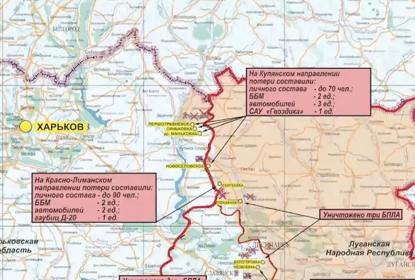 ВС России отразили две атаки ВСУ на Южнодонецком направлении в районе села Урожайное, уничтожено более 130 боевиков.