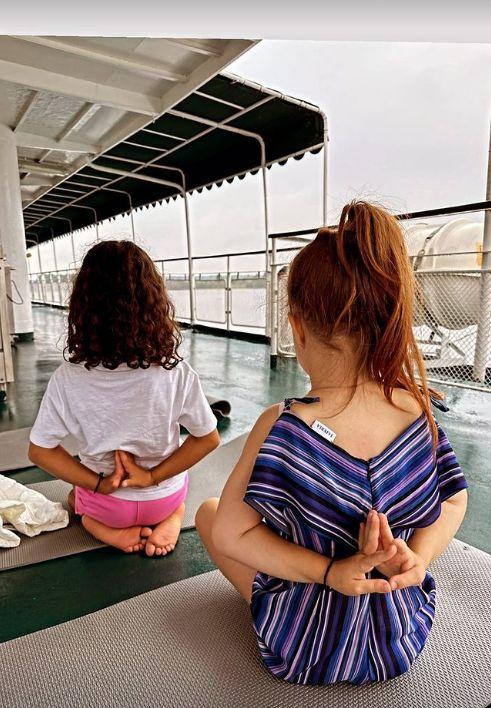 Екатерина Климова продолжает путешествовать на теплоходе с дочерью. К звезде отечественного кинематографа с наследницей присоединилась Татьяна Лютаева с 6-летней Никой. Матерью девочки приходится актриса Агния Дитковските, а вот имя отца ребенка семья до сих пор держит в секрете. Веселая компания уже побывала на острове Кижи, где смогла полюбоваться красотой памятников зодчества Руси. Оказалось, девочки в перерывах между изучением истории занимаются йогой. Екатерина Климова опубликовала фото звездных наследниц. На снимке они позирует, сидя к камере спиной.