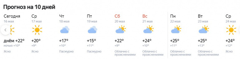В Челябинске осадков в ближайшие трое суток не ожидается. Во вторник потеплеет до +22, в среду — до +21, в четверг — до +19, по ночам столбики уличных термометров будут опускаться до +6…+9 градусов. По данным долгосрочного прогноза от сервиса «Яндекс.Погода», к концу рабочей недели в городе похолодает до дневных +15, но ненадолго.