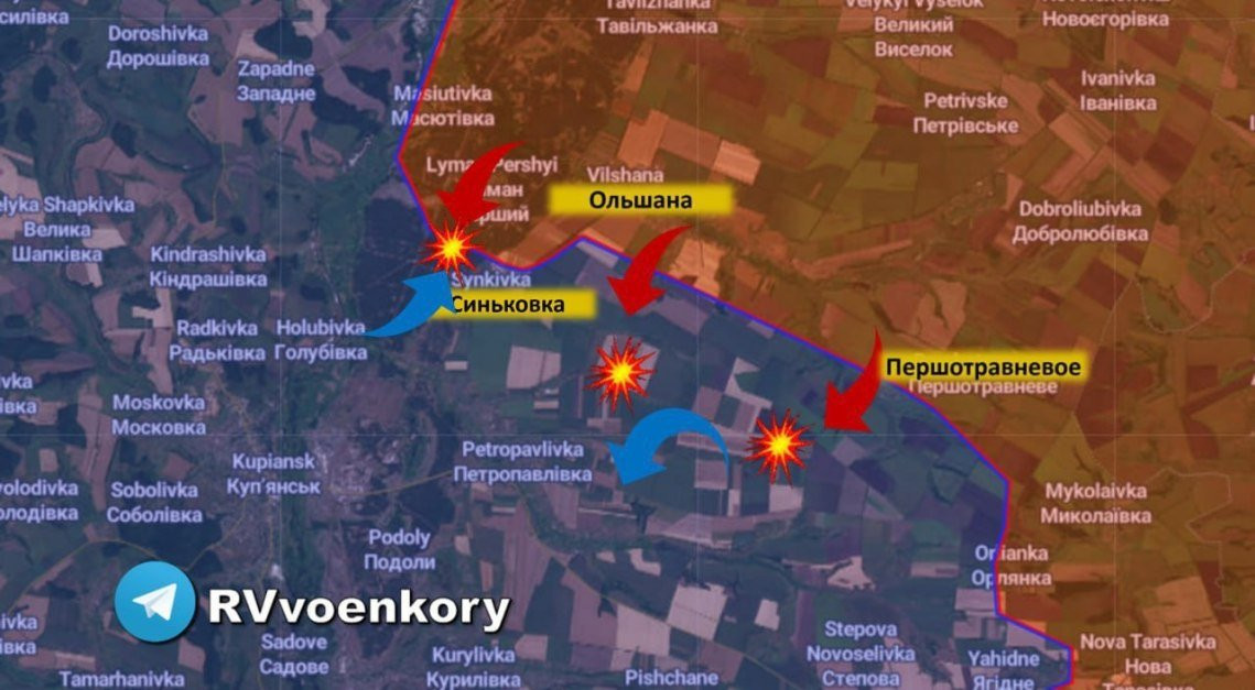 На Купянском направлении русская армия постепенно приближается к городу. Активные боевые действия идут в Синьковке, где часть подразделений ВСУ отступила к укрепрайону вблизи Купянска, и Петропавловке, на окраине которой продолжаются ближние стрелковые бои, передает Telegram-канал Readovka.
