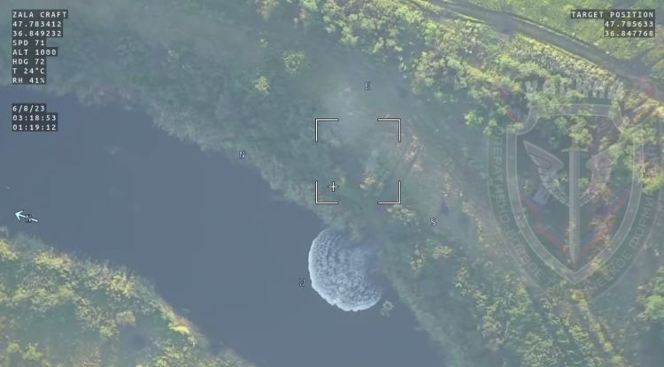 Один из таких случаев произошел недавно. На записи видно, как экипаж опускает танк Т-72 в воду реки Мокрые Ялы, предпринимая этот шаг в ходе попытки прорваться в районе Урожайного. С постепенным погружением танка под воду становится ясно, что водителю удалось покинуть технику и убежать подальше от российского дрона.