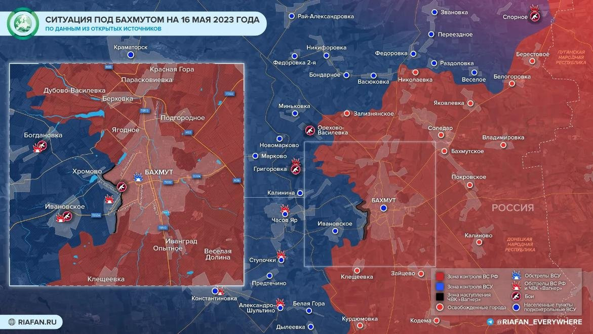 Карта боевых действий в Артемовске на сегодня, 16 мая 2023: оперативные данные