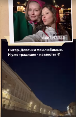 «Питер. Девочки мои любимые. И уже традиция — на мосты» , - написала на фото Пересильд. Актриса опубликовала видеозапись ночной поездки по одному из каналов Санкт-Петербурга.