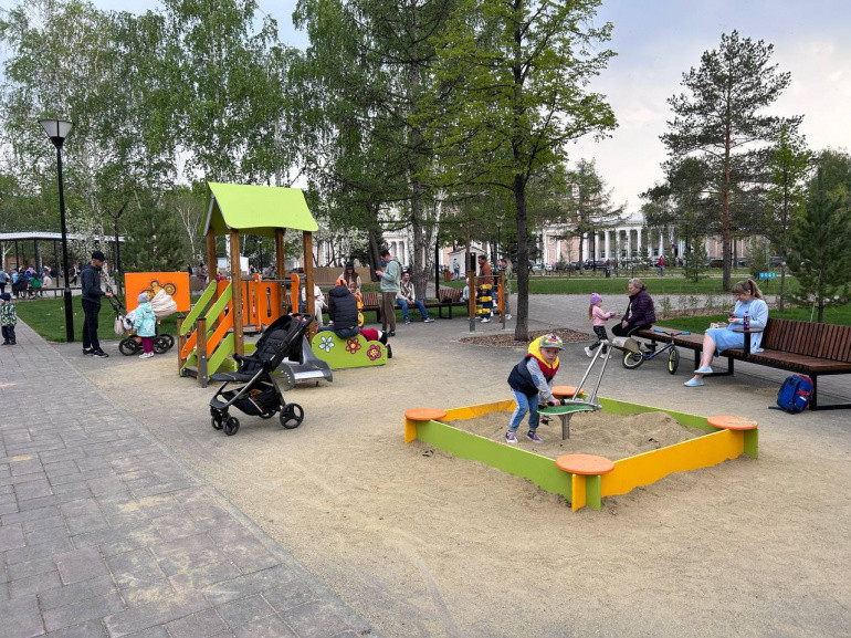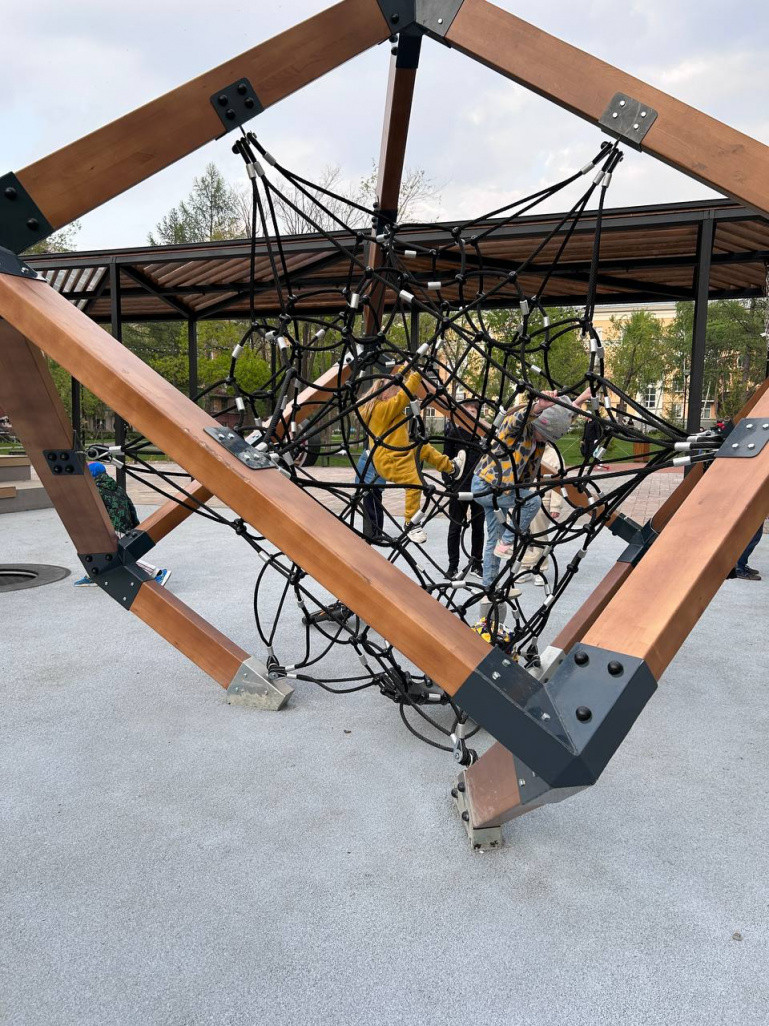 Местные жители в восторге — теперь в сквере есть сразу несколько игровых комплексов для детей разных возрастов — на площадках появились современные качели, горки, игровые батуты, а для самых смелых покорителей вершин установили мини-скалодром. Возле большого городка и куба уложили травмобезопасное покрытие, а также запустили в работу пешеходный фонтан.