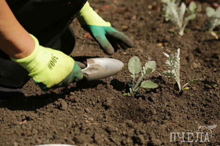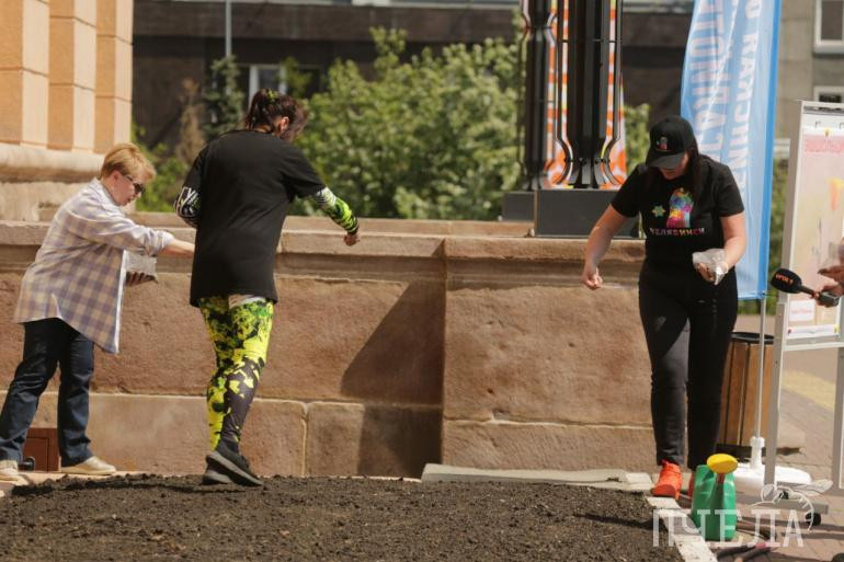 Участники акции засеяли семенами эшшольции две клумбы вокруг здания