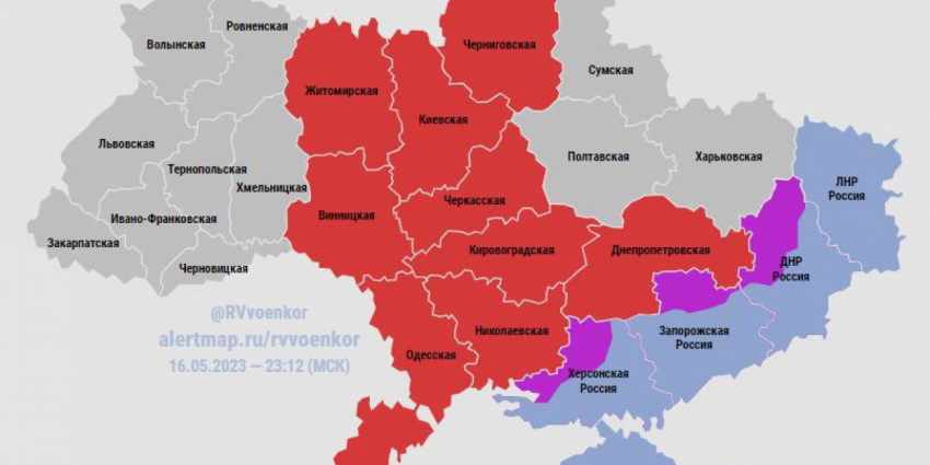 А на данный момент во многих украинских областях объявлена воздушная тревога в связи с очередным пуском ракет и беспилотников по объектам противника.