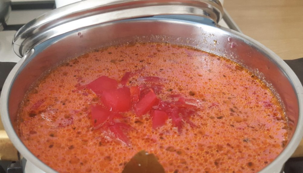 И, наконец, самое главное - чтобы борщ имел яркий цвет, натертую на терке свеклу нужно сбрызнуть лимонным соком или уксусом. Именно кислота сохранит цвет.