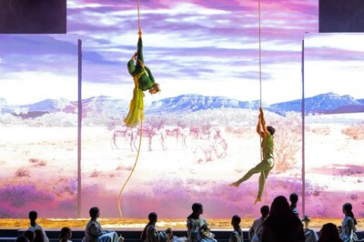 - Исполнители современного и традиционного танца исполняют акробатические элементы, демонстрирующие богатство саудовского исторического наследия и культуры, во время церемонии открытия 45-й сессии Комитета всемирного наследия ЮНЕСКО в Эр-Рияде. (PRNewsfoto/Saudi National Commission for Education, Culture and Science)