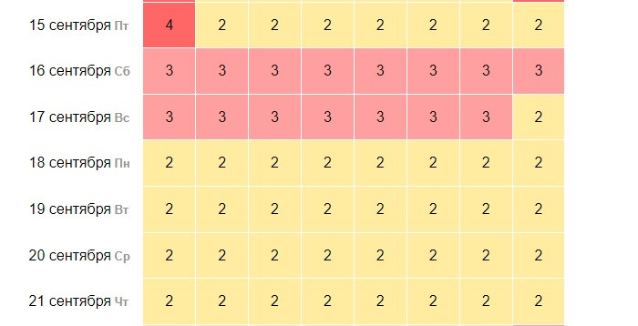 При этом, отмечают журналисты pronedra.ru, еще недавно все 15 сентября было «красным». Теперь же буря сместилась на следующие дни. Ожидается, что возмущения 16-17 сентября будут держаться на уровне 3 баллов.
