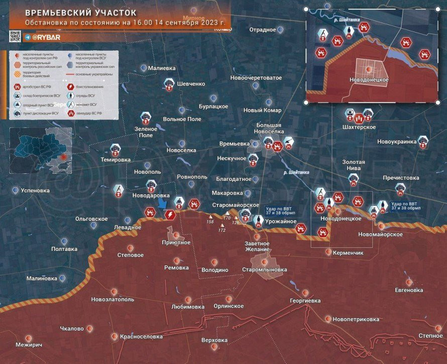 Карта боевых действий на Украине на сегодня, 15 сентября 2023 года
