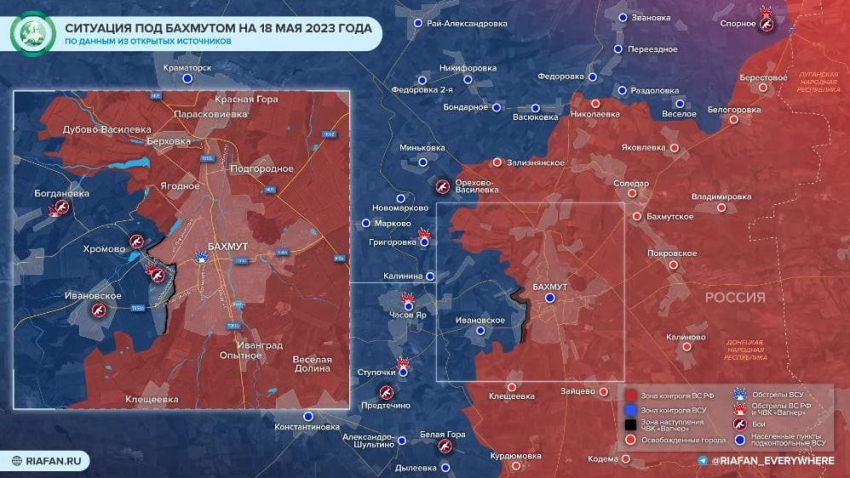 Карта боевых действий в Артемовске на сегодня, 18 мая 2023: оперативные данные