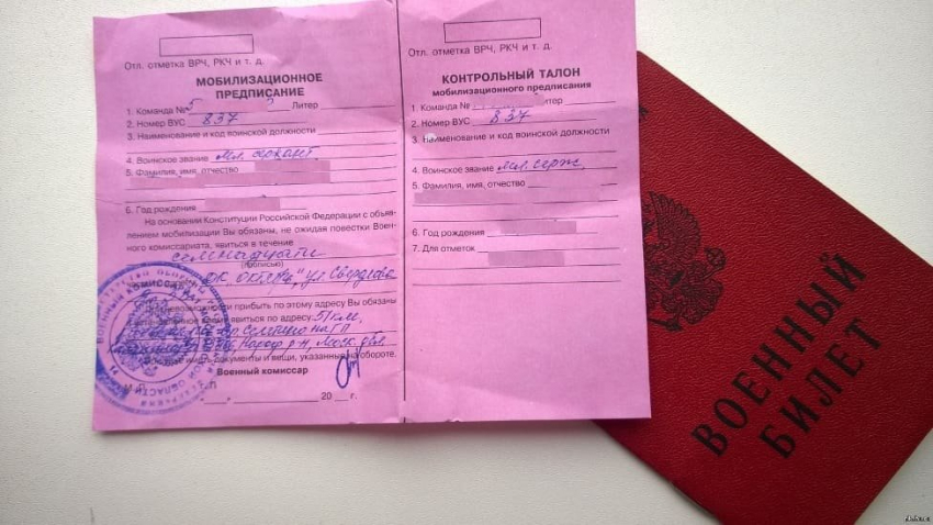 В августе СМИ начали писать, что в ряде регионов жителям поступают повестки из военкомата о необходимости забрать мобилизационное предписание. Что это такое? В общих чертах: это вкладыш в военный билет, в котором содержится информация о военнообязанном, номер части, к которой он приписан, воинское звание, военно-учетная специальность, место и время сборов и пр.