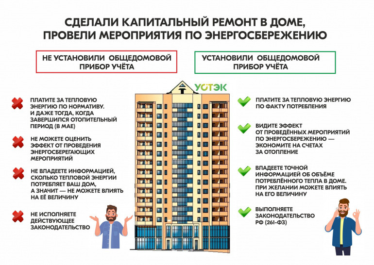 — Без сомнений, дома с утеплёнными стенами, подвалами, доводчиками на входных дверях и остеклением окон расходуют меньше тепла, чем здания, где этим моментам не уделяют должного внимания. Однако экономический эффект от этой программы собственники жилья смогут оценить лишь в том случае, если в доме установлен общедомовой прибор учёта (ОДПУ) тепловой энергии, — отметили в «УСТЭК-Челябинск». — Если его нет, то снижения сумм в квитанциях потребитель не увидит и, вероятнее всего, разочаруется.