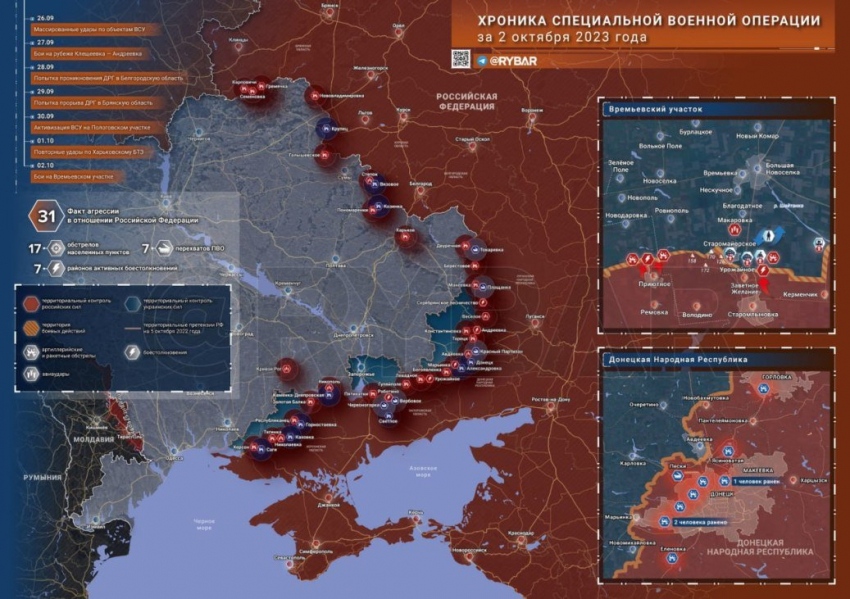 Карта боевых действий на Украине по состоянию на 3 октября 2023 года