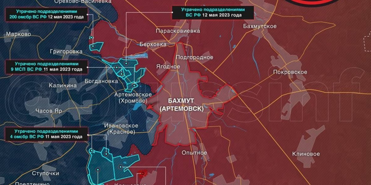 Telegram-канал «Военкоры Русской Весны» сообщил 19 мая о тяжелейшем встречном бое в Артемовске. По его данным, российские войска частично уступили Вооруженным силам Украины (ВСУ) фланги и высоты в городе, что позволило украинским военным фактически непрерывно подтягивать подкрепление.