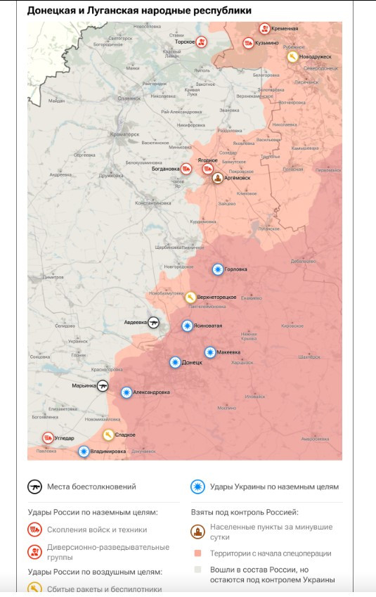 Обновленная карта военной операции на Украине 21 мая 2023 года: ВС РФ мощно атакуют под Авдеевкой и в Марьинке