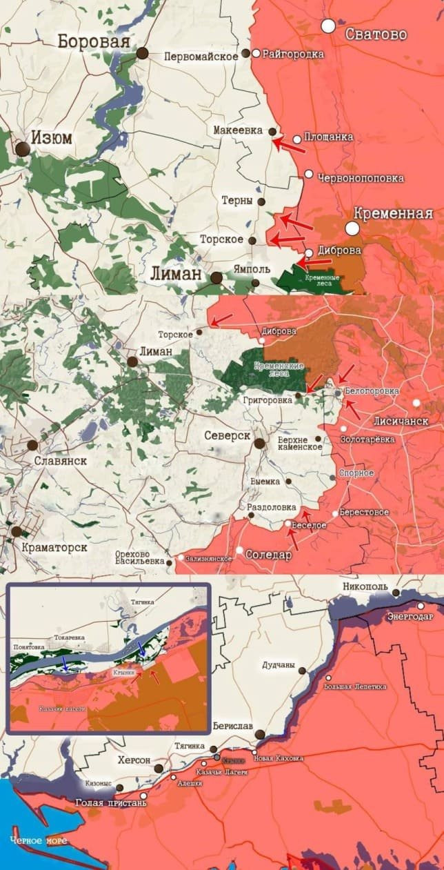 На Херсонско-Крымском направлении ВС РФ при поддержке артиллерии и авиации атаковали украинские подразделения в Крынках и заставили их отойти с ряда позиций в селе. Российские средства дальнего поражения работали по ВСУ в Херсоне, Садовом, Тягинке, Львовом, Бериславе, Новобериславе, Змеевке, Красном Маяке, Республиканце и Качкаровке. Зона обстрелов правобережья значительно расширилась на север. Догадки строить не будем, но, возможно, какая-то из противоборствующих сторон попытается форсировать Днепр. И с этим связана активизация работы средств дальнего поражения ВС РФ. Украинская артиллерия вела огонь по российским позициям в Алёшках, Пойме, Песчановке и Казачьих Лагерях.