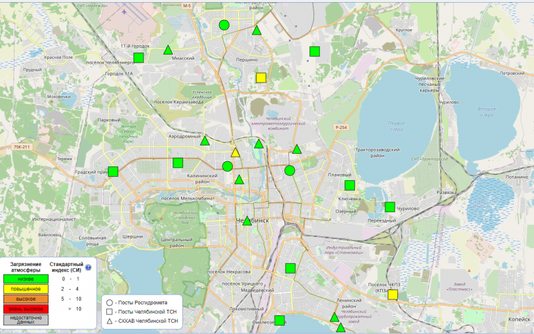 По данным единой информационной системы мониторинга качества воздуха, днём в понедельник, 22 мая, в Калининском, Ленинском и Металлургическом районах города наблюдаются превышения по сероводороду. Все данные о превышениях передаются в надзорные органы.