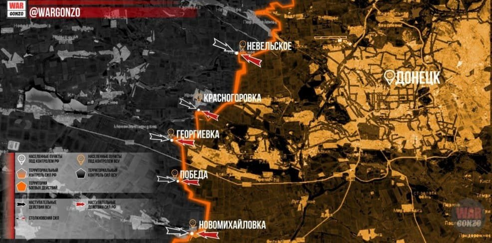 На Донецком направлении на Авдеевском участке в районе Бердычей был уничтожен очередной американский M1A1SA. Продолжаются бои в Бердычах, Орловке, Тоненьком, Новомихайловке. В Первомайском есть продвижение.