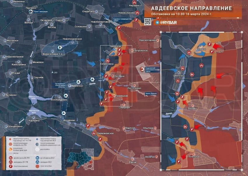 Сводка от 17 марта 2024 года - карты боевых действий, ситуация на фронтах Украине, ход специальной военной операции. Штурм Бердычи и Орловки. Тяжёлые бои на Авдеевском направлении. Все последние новости - в материале N4k.