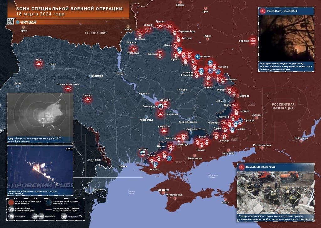 Последние новости СВО от 19 марта 2024. Карта боевых действий на Украине на сегодня, военная сводка