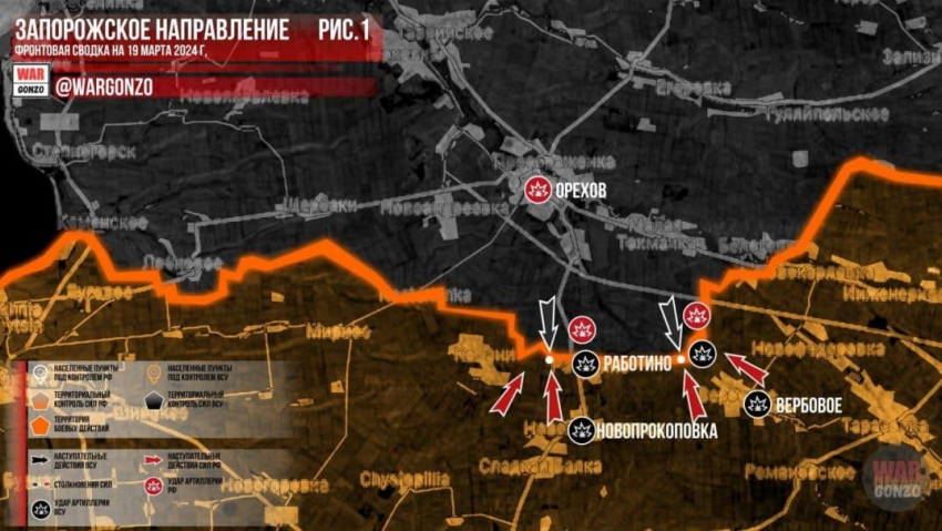 Новая карта боевых действий в зоне СВО на Украине по данным на 19 марта 2024
