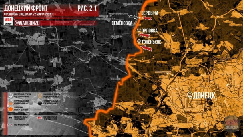 Свежая карта боевых действий на Украине по данным на 12:00 мск от 22.03.2024. Последние новости СВО на сегодня