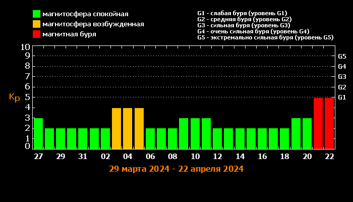 По оценкам профильных специалистов, в понедельник магнитная активность может стать несколько слабее. При специалист добавил, что уже утром 26 числа ситуация может ухудшиться. Буря может подняться до высоких значений.
