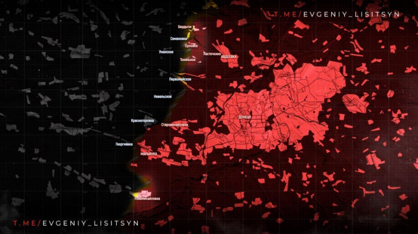 На Авдеевском направлении в районе Тоненького российские войска продолжают развивать наступление в направлении Уманского и Яснобродовки. Ожесточённые бои на подступах к Семёновке, где Вооружённые силы Российской Федерации (ВС РФ) атакуют со стороны Орловки и с участка между Орловкой и Бердычами, стараясь взять под контроль дорогу, снабжающую украинский гарнизон в этом населённом пункте, передаёт Telegram-канал Wargonzo.